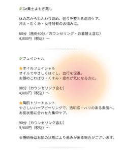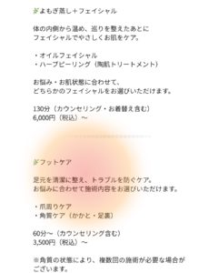 黄土よもぎ蒸し/フェイシャル/ネイル/フットケア